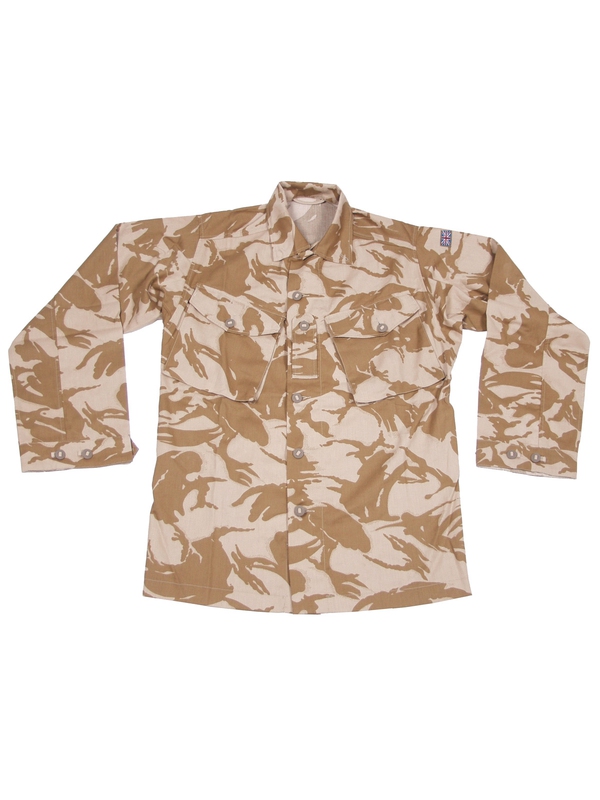 Britská poľná košeľa, v prevedení DP desert. Košeľa má našité dve šikmé vrecká na gombíky, nastaviteľné manžety na rukávoch na gombíky, všetky gombíky sú podšité. Materiál: 100% bavlna.