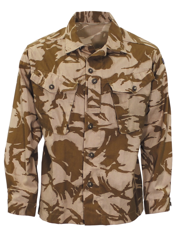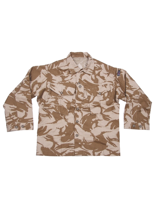 Britská poľná košeĺa, DP dezert, má dve šikmé náprsné vrecká na gombíky s praktickými držiakmi pera vnútri, zapínacie na gombíky, manžety s gombíkmi. Materiál: 100% bavlna.