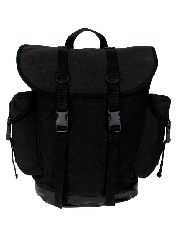 BW horský batoh, v čiernej farbe, nový model. Nový štýl tradičného horského batohu má plastový uzáver, ramenné vypchávky, vystuženú základňu vyrobenú z nepremokavej PVC, 2 bočné vrecká, 1 vnútorné vrecko, držadlo, obsah asi 30 litrov, materiál: 100% bavlna.