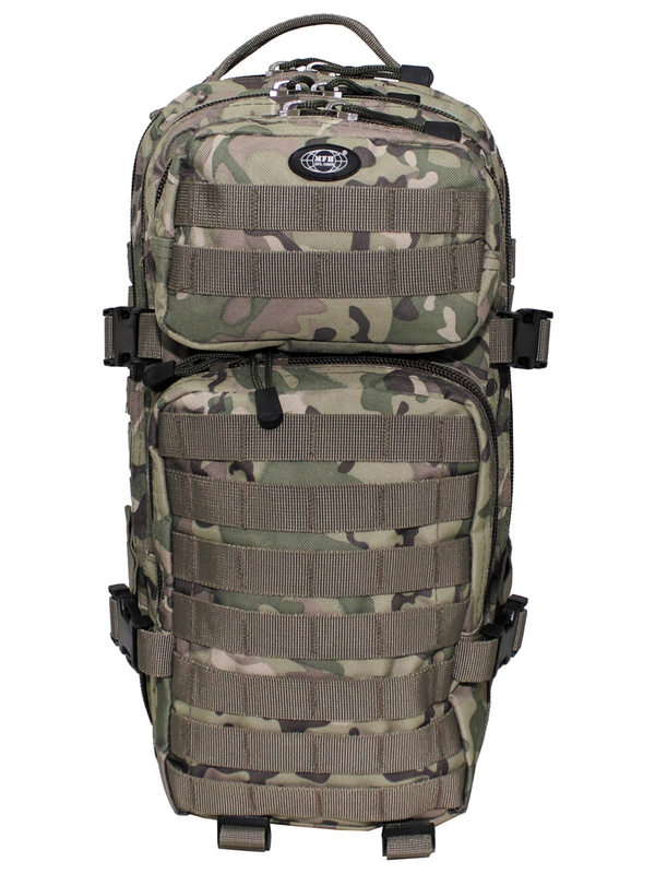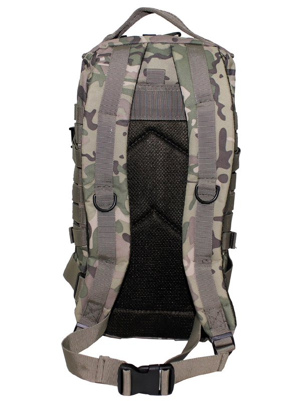 Originál US batoh, Assault Aj v dizajne bojovej camo, dve veľké hlavné priehradky na zips a sieťované vrecká, dve veľké predné vrecká so zapínaním na zips, nastaviteľné a polstrované ramenné popruhy s D-krúžkami, vstavanou vreckom na suchý zips pre balenie hydro na zadnej strane, rôzne Molle pripojovacie body, držadlo, priedušná chrbát, obsah 30 l, materiál: 100% bavlna, veľkosť: 45 x 25 x 20 cm. | ||