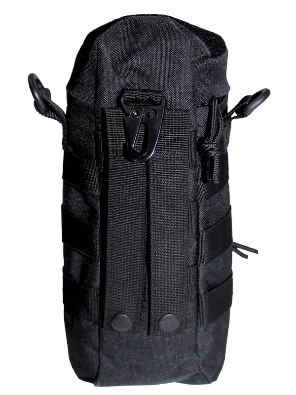 Valcovitý batoh "MOLLE", čierny. Batoh má veľkú hlavnú priehradku s vekom na zips a predné vrecko na zips a suchý zips, 2 D-krúžky, karabínu. Veľkosť: priemer: 11 cm, výška: 25 cm, materiál: 100% polyester.