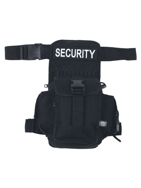 Čierny batoh Security je vhodný nielen pre bezpečnostné zložky, ale hodí sa aj pre voľný čas a cestovanie. Má odnímateľný popruh cez bedra a stehna, sponu na opasok nastaviteľnou s klipom uzáverom, sedem rôznych priehradiek vrátane dvoch na zips, odnímateľný panel na suchý zips a na suchý zips odnímateľné logo SECURTIY. Materiál: 100% polyester.