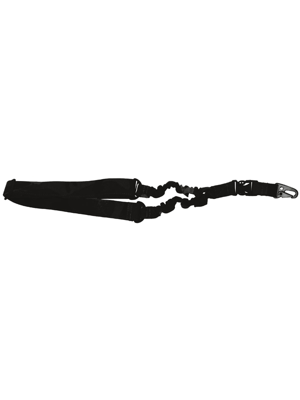 Nosný systém Bungee v čiernej farbe, s karabínou. Opasok má odnímateľný klip s karabínou, elastický element, nastaviteľná dĺžka: 55 až 75 cm (nenatiahnutá), materiál 100% nylon. | ||