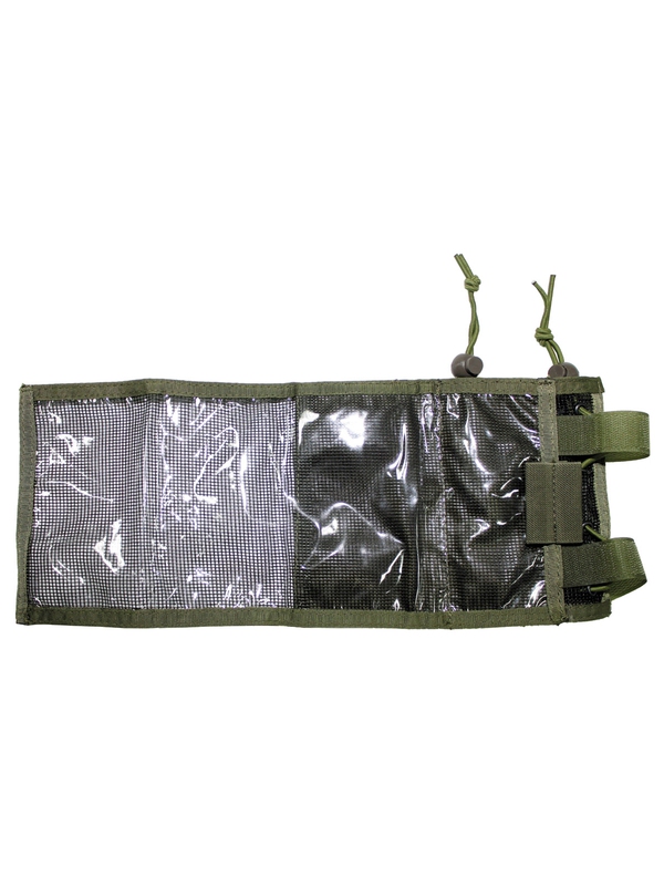 Vrecko na rameno v olivovej farbe na uschovanie platobných kariet, dokladov alebo mapy. Ramenné vrecko má široko nastaviteľné elastické šnúrky so zátkou, priehľadnou vrecko na mapu, vrecko na mince na zips, dva držiaky na perá. Materiál: 100% polyester. | ||