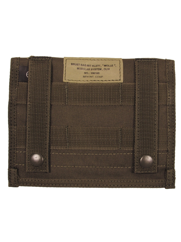 Náprsné vrecko alebo taky peňaženka "dokladovka" na suchý zips, modulárny systém MOLLE, v olivovej farbe, material: 100% nylon, má dve vnútorné vrecká, rozmer: cca dĺžka: 18, Výška: 14 cm. | ||