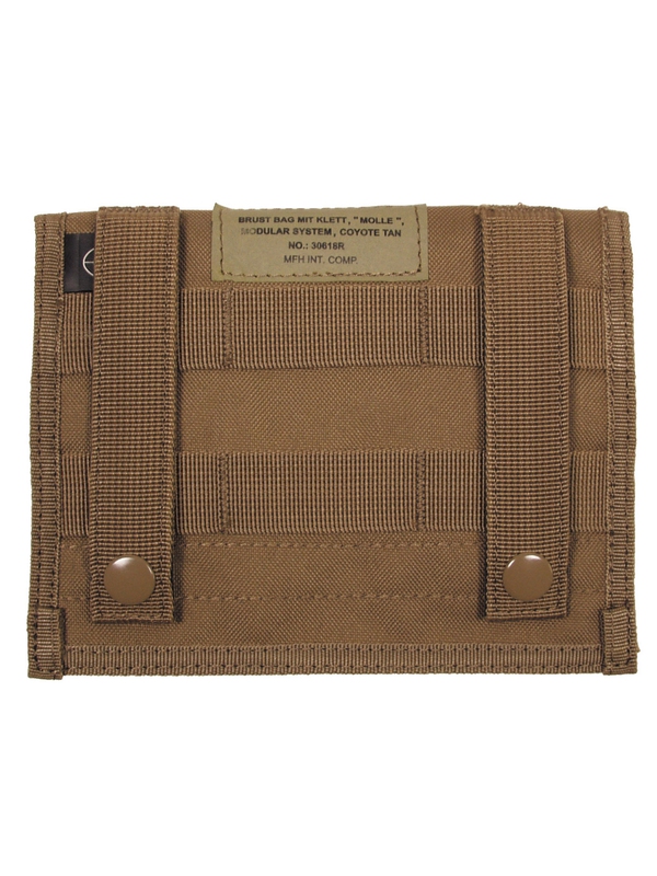 Náprsné vrecko alebo taky peňaženka "dokladovka" na suchý zips, modulárny systém MOLLE, dizajn coyote tan, material: 100% nylon, má dve vnútorné vrecká, rozmer: cca dĺžka: 18, Výška: 14 cm. | ||