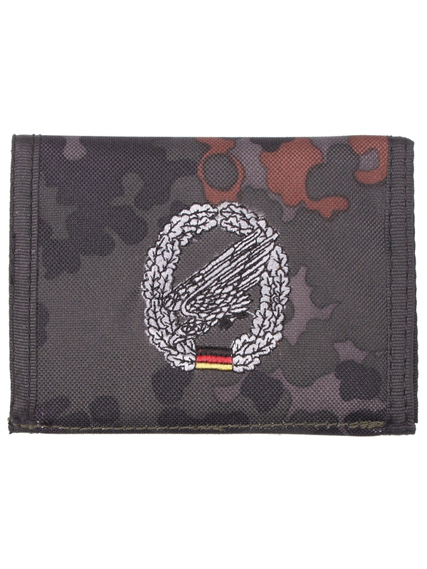 Textilná peňaženka s vreckami na suchý zips, v dizajne flecktarn, so znakom, materiál: 100% nylon. | ||