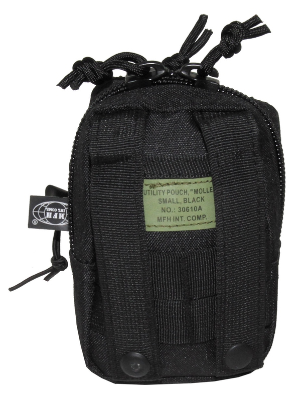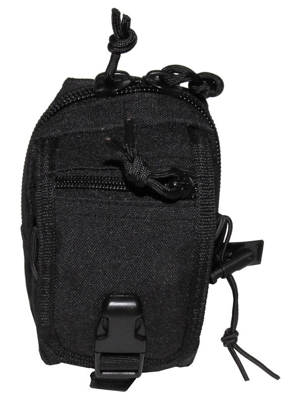 Kapsička "Molle" malá, v čiernej farbe. Zips top, predné vrecko s gumovými šnúrami. Veľkosť: šírka: 9 cm, hĺbka: 10 cm, výška: 14 cm, materiál: 100% polyester. | ||