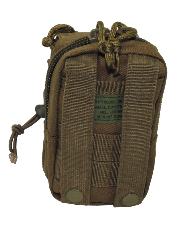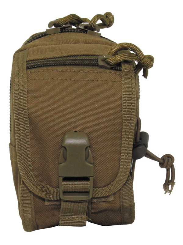 Kapsička "Molle" malá, v dizajne coyote tan. Zips top, predné vrecko s gumovými šnúrami. Veľkosť: šírka: 9 cm, hĺbka: 10 cm, výška: 14 cm, materiál: 100% polyester. | ||