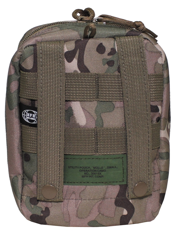 Univerzálne púzdro MOLLE na zips v dizajne operačný camo, veľkosť: šírka: 13 cm, hĺbka: 7 cm, výška: 19 cm, materiál: 100% polyester. | ||
