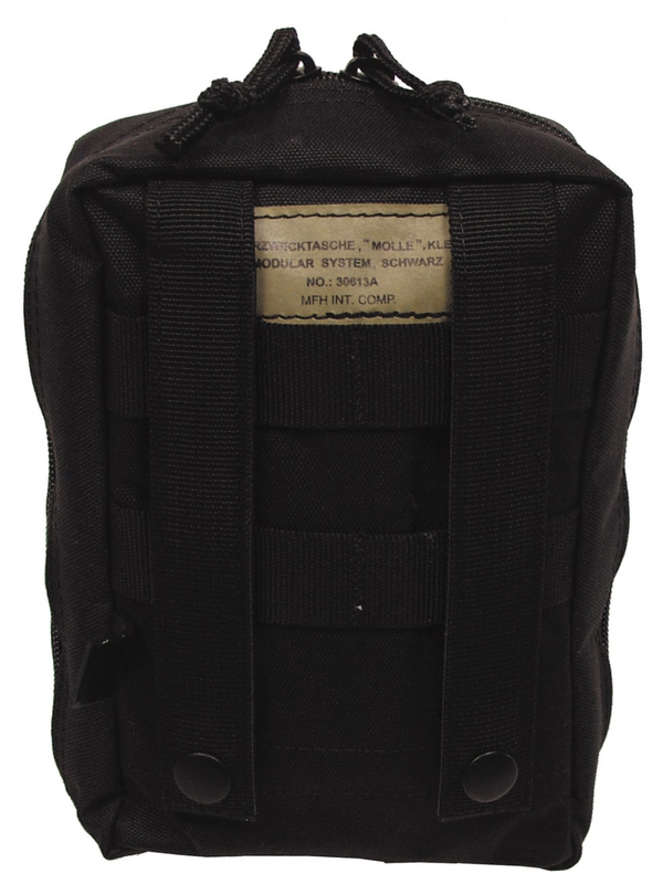 Vrecko "MOLLE" na zips, malé, Modular System, čierna, veľkosť: šírka: 13 cm, hĺbka: 7 cm, výška: 19 cm, materiál: 100% polyester. | ||