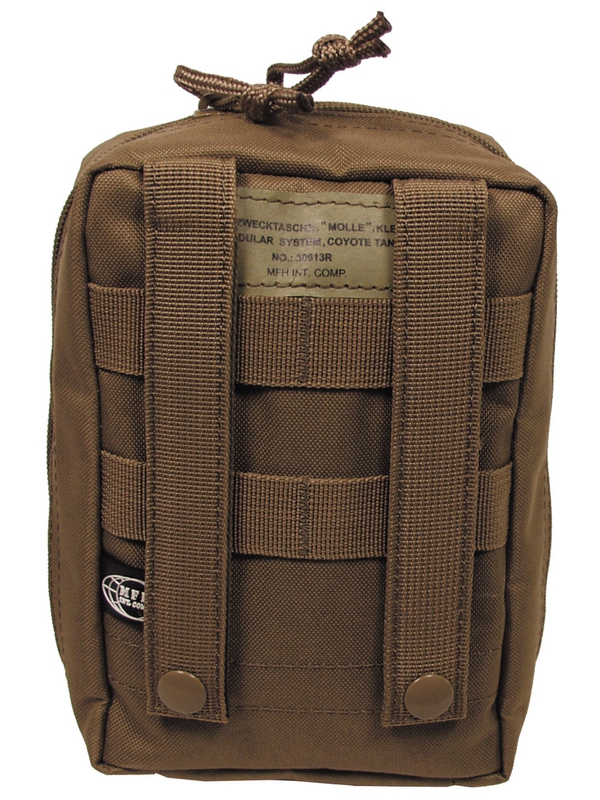 Vrecko "MOLLE" na zips, malé, Modular System, v dizajne coyote tan, veľkosť: šírka: 13 cm, hĺbka: 7 cm, výška: 19 cm, materiál: 100% polyester. | ||