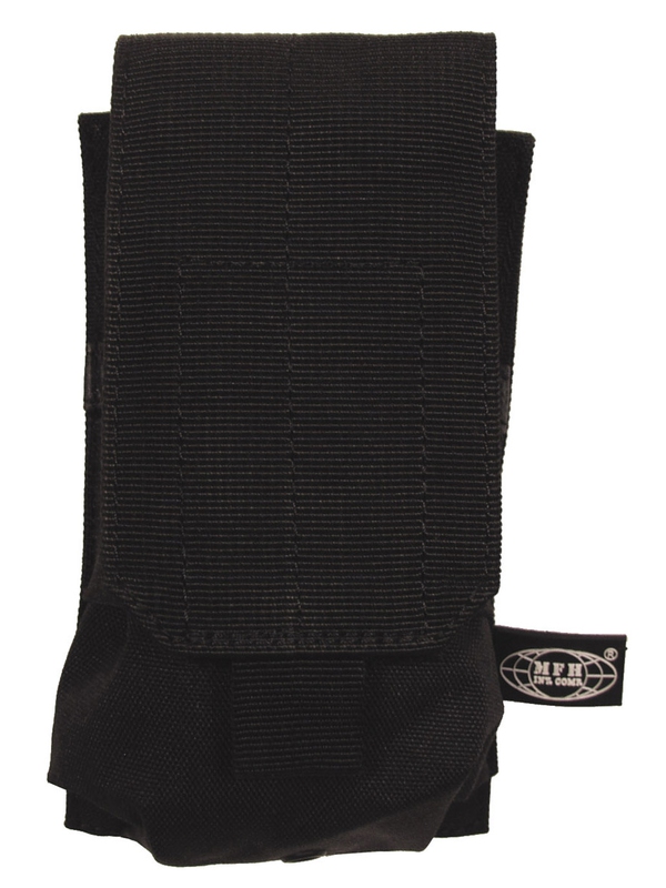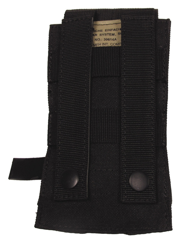 Puzdro na zásobník "MOLLE", Modular System, v čiernej farbe. MOLLE Mag puzdro so zapínaním na suchý zips je kompatibilná puzdro na zásobníky M4/M16 a ďalšie. Materiál: 100% nylon. Rozmery: šírka: 8.5 cm, hĺbka: 5 cm, výška: 16 cm. | ||