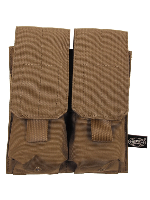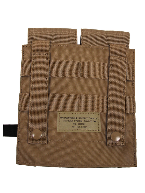 Puzdro na zásobník "MOLLE", Modular System, dvojité, v dizajne coyote tan. Dvojité púzdro na dva zásobníky na suchý zips. Veľkosť: šírka: 8,5 cm, hĺbka: 5 cm, výška: 17 cm, materiál: 100% nylon.