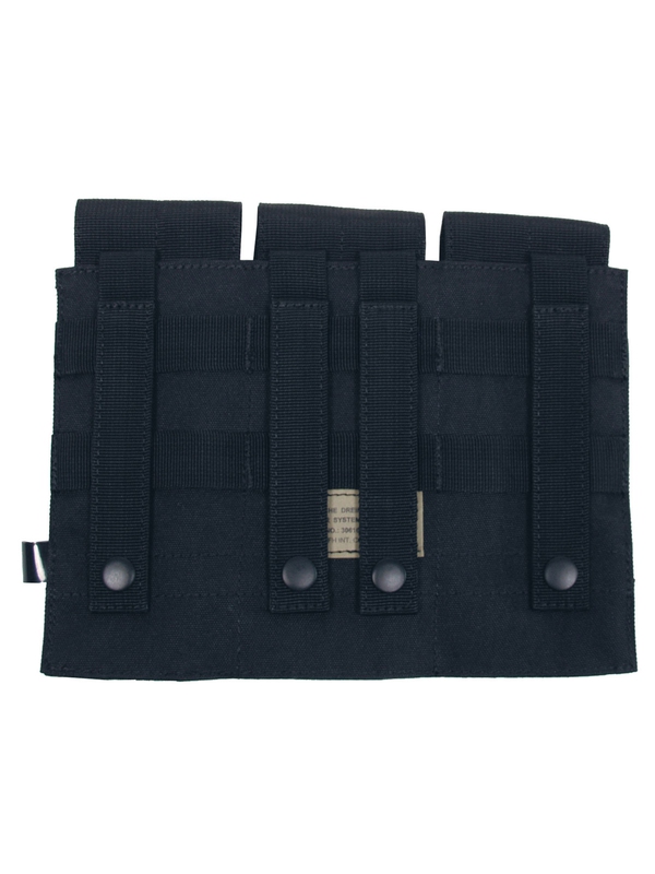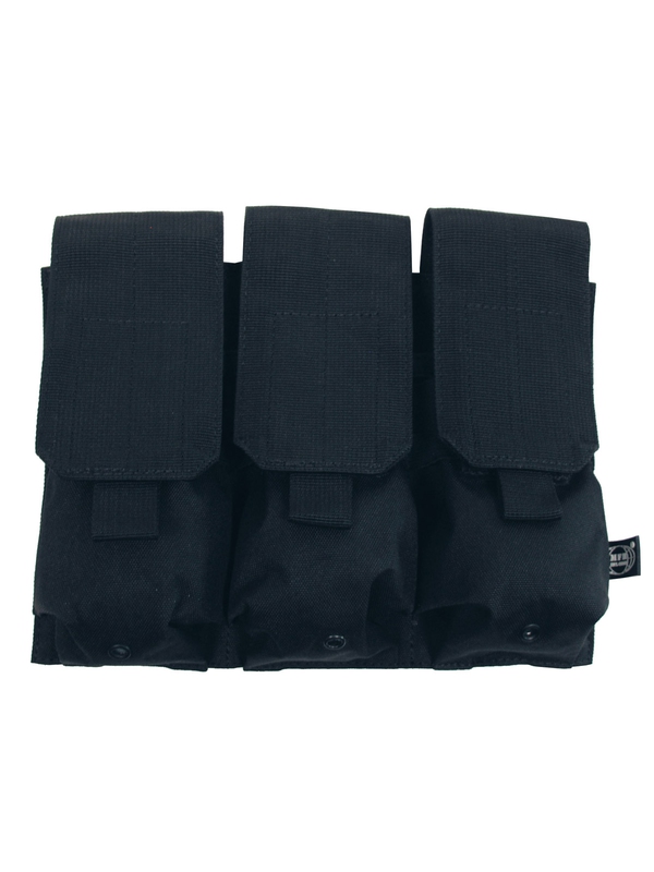 Trojité puzdro na zásobník "MOLLE" modulárny systém, v čiernej farbe, tri vrecká na suchý zips, veľkosť: šírka: 8,5 cm, hĺbka: 5 cm, výška: 17 cm, materiál: 100% polyester. | ||