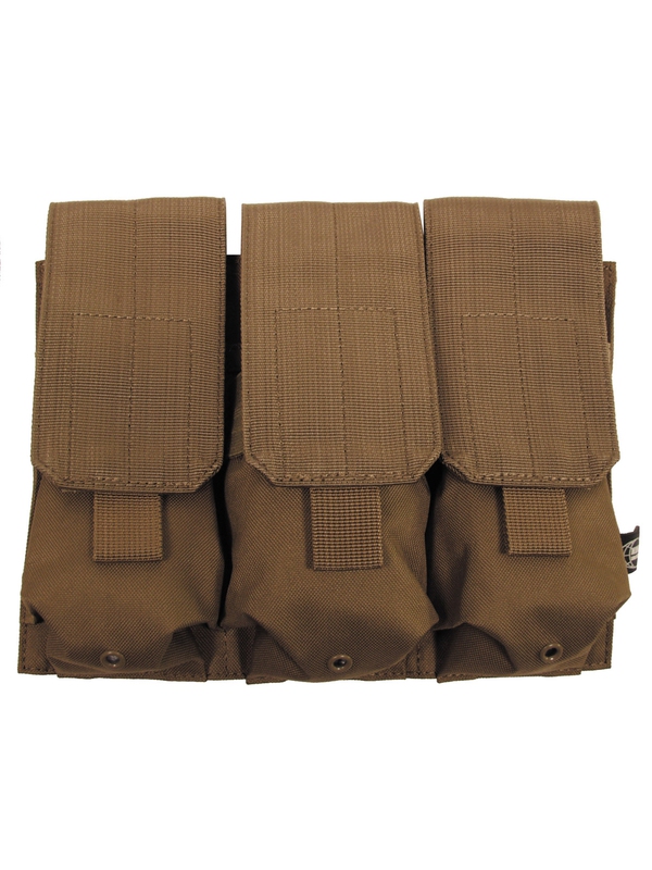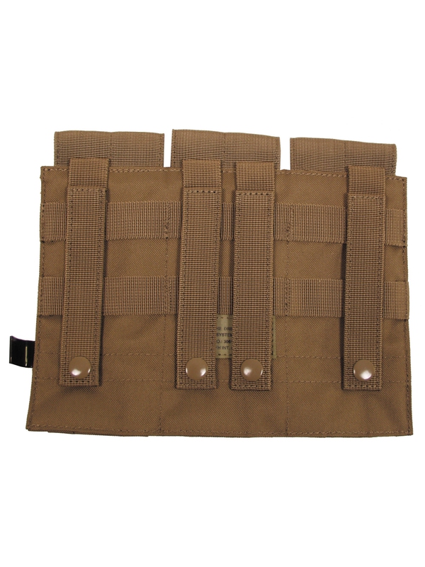 Trojité puzdro na zásobník "MOLLE" modulárny systém, dizajn coyote tan, tri vrecká na suchý zips, veľkosť: šírka: 8,5 cm, hĺbka: 5 cm, výška: 17 cm, materiál: 100% polyester. | ||