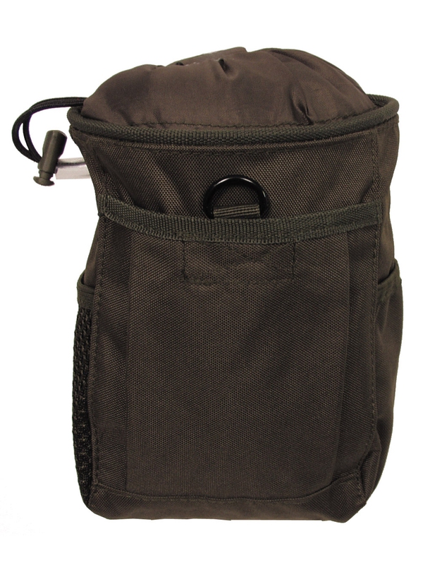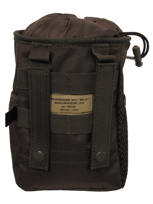 Olivové vrecko na nábojnice, "MOLLE" Modulárny systém, vonkajšie predné vrecko na suchý zips a slučku, dve malé bočné vrecká, sťahovací uzáver. Rozmery: šírka: 14 cm, hĺbka: 8 cm, výška: 20 cm, materiál: 100% polyester. | ||