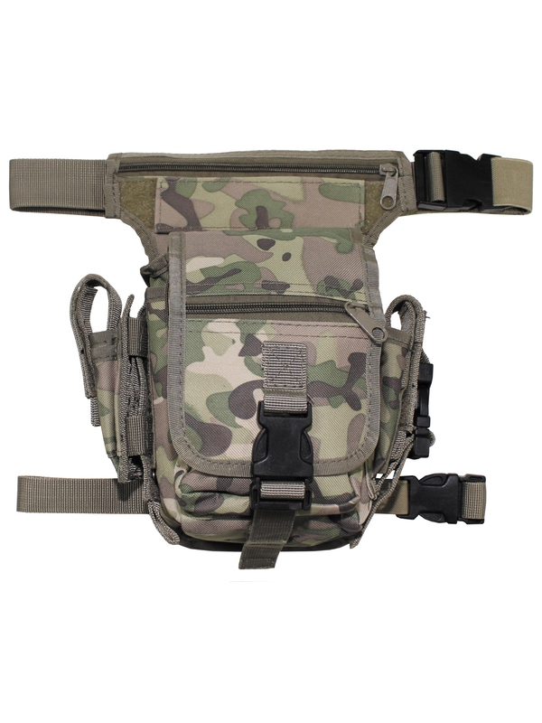Taška Hip Bag, operačný camo, s pásikom na nohu a sponou na opasok Praktická taška hip, ideálny pre bezpečnostné sektor, voľný čas a cestovanie, odnímateľný bočné a stehenné popruh, nastaviteľný s klipom na uzavretie, možnosť pripojenia desiatich rôznych predmetov, vrátane troch sa zapínaním na zips a jedna odopínacie, na suchý zips odnímateľná doska, materiál: 100% polyester. | ||