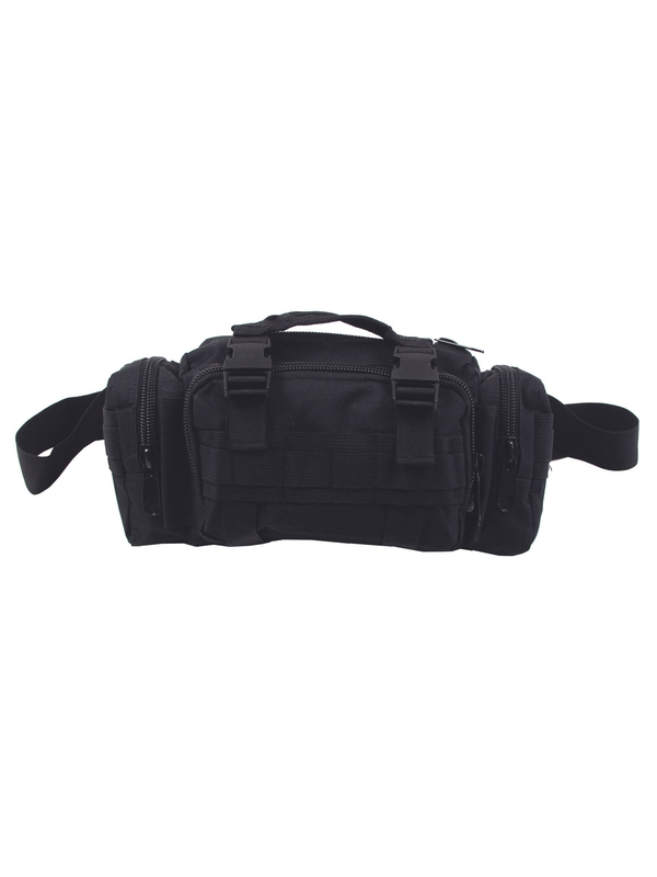 Čierna ľadvinka s nastaviteľným popruhom s prackou na zapnutie, spona na opasok, ucho, sedem rôznych priehradiek, štyri na zips, dve na ceruzky. Materiál: 100% polyester.