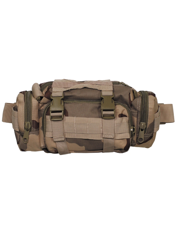 Ľadvinka v dizajne tri farby púšte, s nastaviteľným popruhom s prackou na zapnutie, spona na opasok, ucho, sedem rôznych priehradiek, štyri na zips, dve na ceruzky. Materiál: 100% polyester