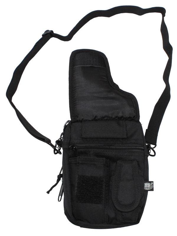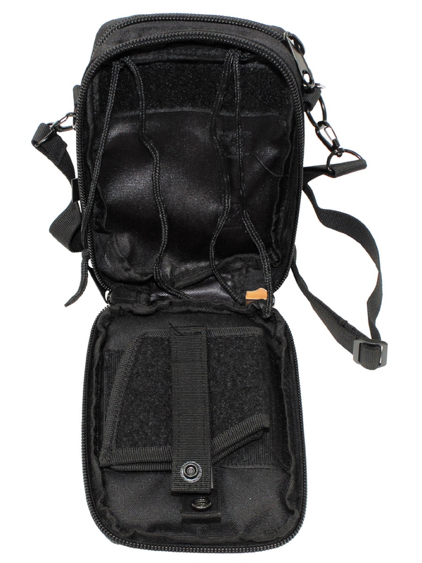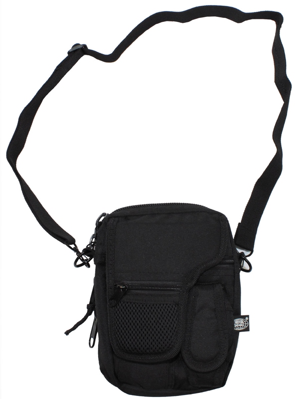 Praktická brašna s nastaviteľným popruhom cez rameno, spona na opasok, 6 rôznych priehradiek, z toho 4 na zips, vnútorný priestor, odnímateľný popruh, materiál: 100% polyester.
