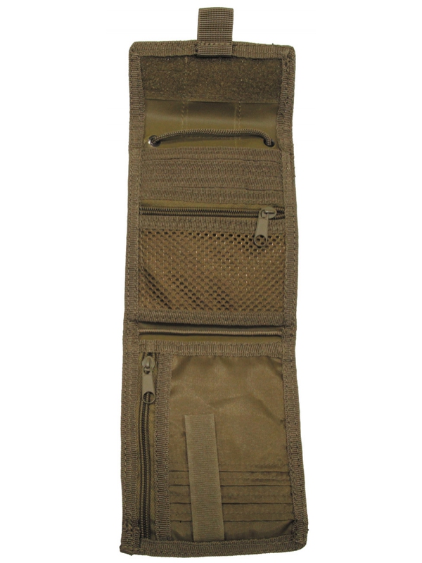Skladacie vrecko na doklady, sa šnúrou, v dizajne coyote tan. Vrecko má dve vnútorné vrecká na zips, 8 slotov pre doklady totožnosti, vodičák, kreditky a pod, dve vrecká na prednej časti, zaťahovací popruh, veľkosť zatvorená: 15 x 12,5 cm, veľkosť otvorená: 37 x 12,5 cm, materiál : 100% polyester. | ||