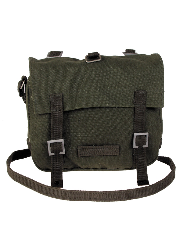 Malá BW bojová taška, v olivovej farbe. Plátená taška s nastaviteľným ramenným popruhom, sponou na opasok, tromi vnútornými vreckami. Materiál 100% bavlna, veľkosť: cca 21 x 23 x 8 cm. | ||