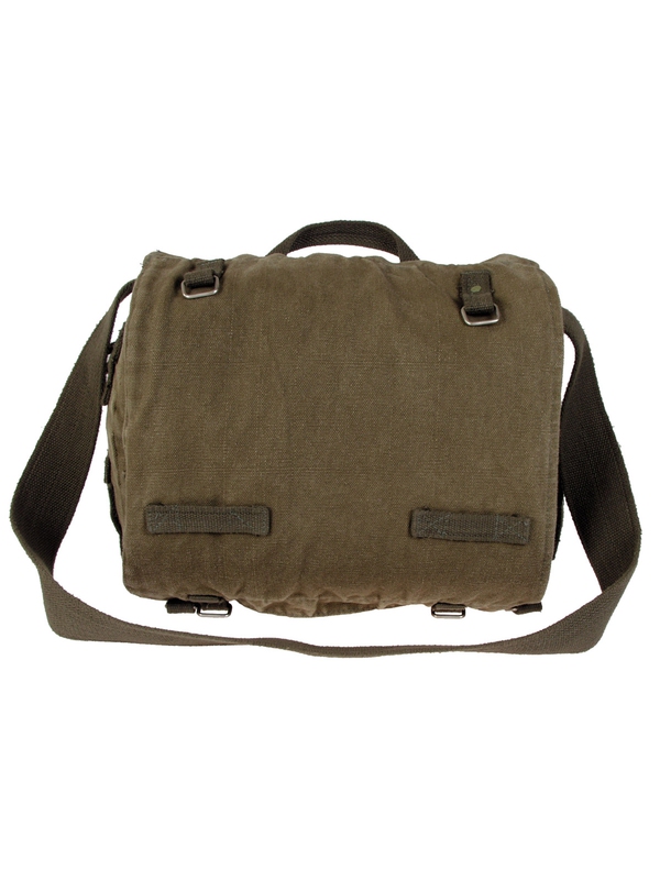 BW bojová taška, v olivovej farbe - opraný vzhľad. Plátená taška s nastaviteľným popruhom cez rameno, tromi vnútornými vreckami, jedno vonkajšie vrecko, ucho s nastaviteľnou dĺžkou a jedno krátke ucho, materiál: 100% bavlna, veľkosť: cca 34 x 24 x 12 cm. | ||