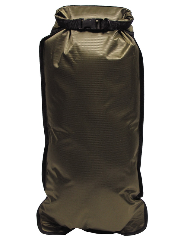 Transportná taška, vodotesná, Rip Stop, 10 L., v olivovej farbe je z nepremokavej polyesterovej tkaniny s uzáverom na karabínu, výška: 57 cm, priemer: 30 cm. | ||