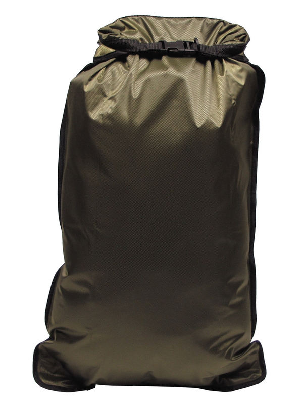 Transportná taška, vodotesná, Rip Stop, 20 L., v olivovej farbe je z nepremokavej polyesterovej tkaniny s uzáverom na karabínu, výška: 66 cm, priemer: 42 cm. | ||