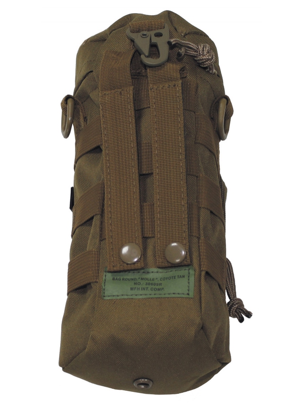 Taška na bicykel, "MOLLE" v dizajne coyote tan. Vychytaný batoh na bicykel má veľkú hlavnú priehradku s vekom na zips a predné vrecko na zips a pásky na suchý zips, 2 D-krúžky, 1 karabína, Priemer: 11 cm, výška: 25 cm. Materiál: 100% polyester.