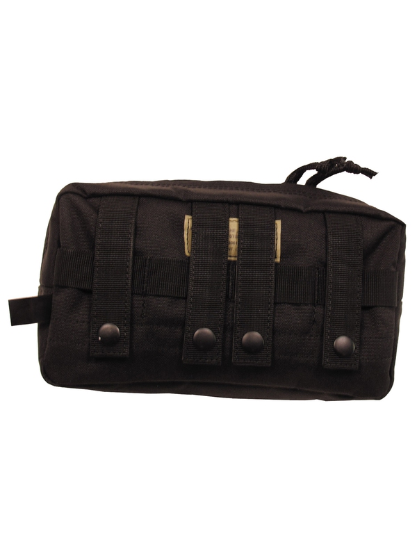 Taška "MOLLE" s horným zapínaním, veľká, Modular System, v čiernej farbe. Taška so zapínaním hore na zips má rozmery: dĺžka cca: 24 cm, hĺbka: 9 cm, výška: 13 cm, materiál: 100% polyester.
