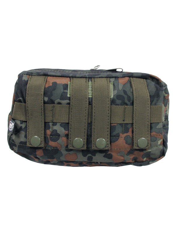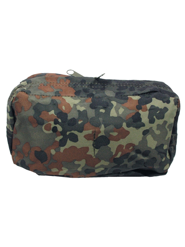 Taška "MOLLE" na zips veľká, Modular System, v dizajne flecktarn. Taška so zapínaním hore má rozmery dĺžka cca: 24 cm, hĺbka: 9 cm, výška: 13 cm, materiál: 100% polyester. | ||