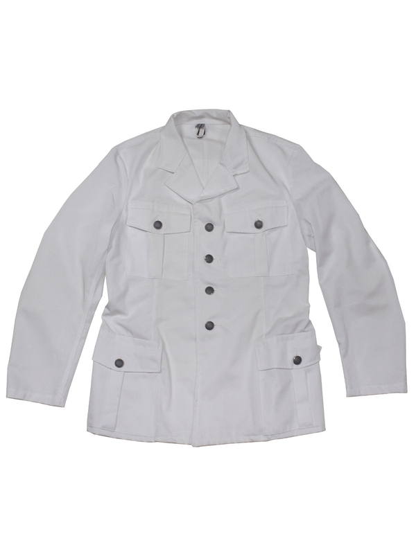 Rakúska BH služobná bunda, biela, štyri našité vrecká, materiál: 50% bavlna, 50% polyester. 88 - 92 = veľkosť S, veľkosť M = 96 - 100. | ||