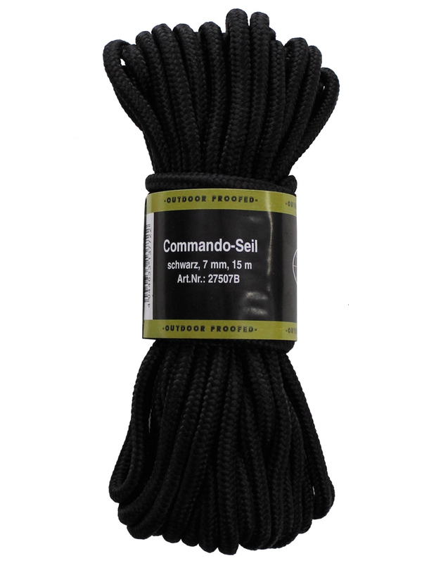 Pevná padákový šnúra o šírke 7 mm a dĺžke 15 mv čiernej farbe. Nosnosť cca 400 kg, hmotnosť: 0,269 kg. Výrobca: MFH. | ||
