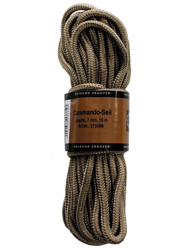Pevná padákový šnúra o šírke 7 mm a dĺžke 15 mv farbe kojot. Nosnosť cca 400 kg, hmotnosť: 0,269 kg. Výrobca: MFH. | ||