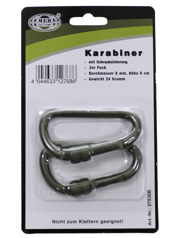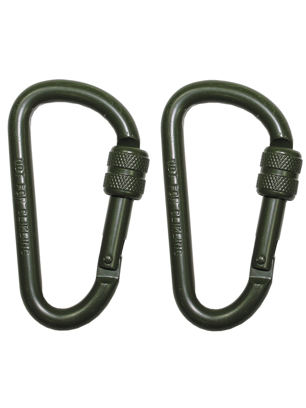 Karabína so skrutkovacím uzáverom, 8mmx8cm, 2 ks, olivový, nie je vhodná pre lezenie a pri záchranných operáciách. | ||