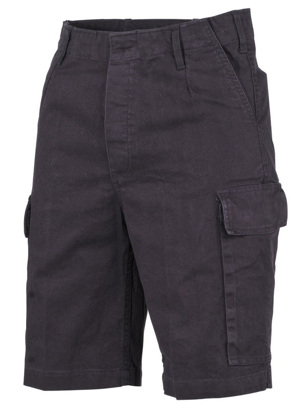 Kraťasy - kópie Bundeswehr - opraný vzhľad. Kraťasy v čiernej farbe majú 2 predné vrecká, 2 zapínacie zadné vrecká a 2 veľké zapínacie vrecká na stehnách. Obvod pása sa dá zmenšiť pomocou bočných pásikov. Materiál: 100% bavlna. | ||