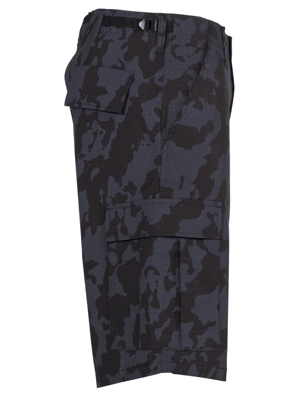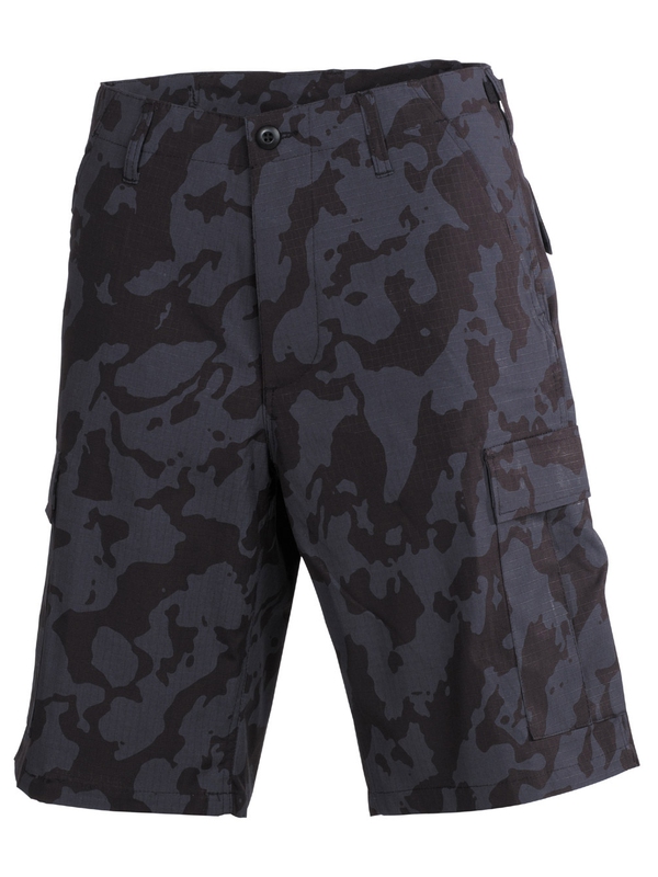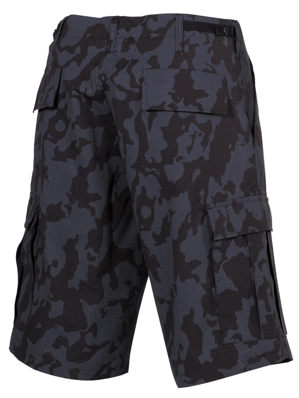 Kraťasy - originál strih, farba a materiál podľa Bermúd US Army. Farebné prevedenie night camo. Kraťasy majú 2 predné vrecká, 2 zapínacie zadné vrecká, 2 veľké zapínacie vrecká na stehnách. Obvod pása sa dá zmenšiť pomocou bočných pásikov (o cca 10cm). Materiál: 100% bavlna - Rip Stop. | ||