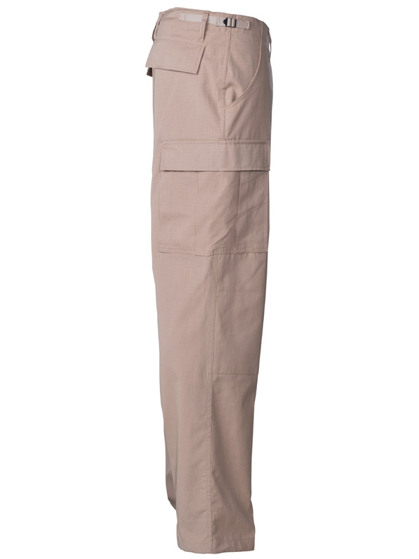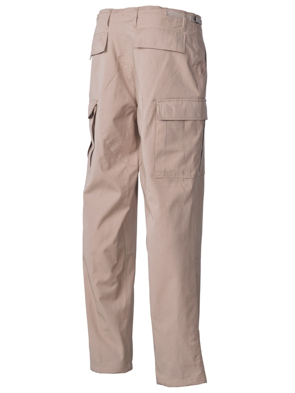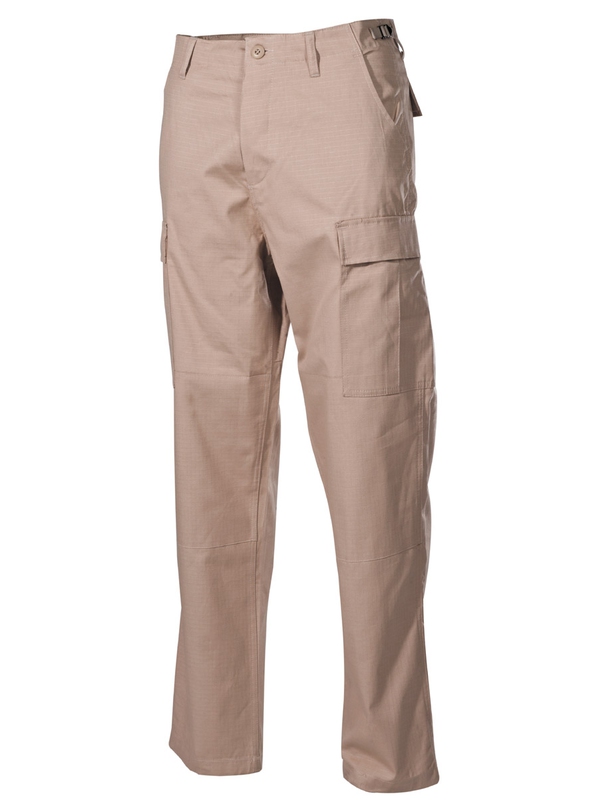 US bojové nohavice BDU, materiál Rip Stop, khaki. Klasické US ARMY nohavice v originálnom dizajne majú dve bočné vrecká, dve zadné s klopou a dve bočné s príklopkou na nohe. Nohavice na utiahnutie, nastaviteľný pás, dvojitá kolena, zapínanie na gombíky, materiál: 100% bavlna