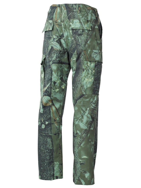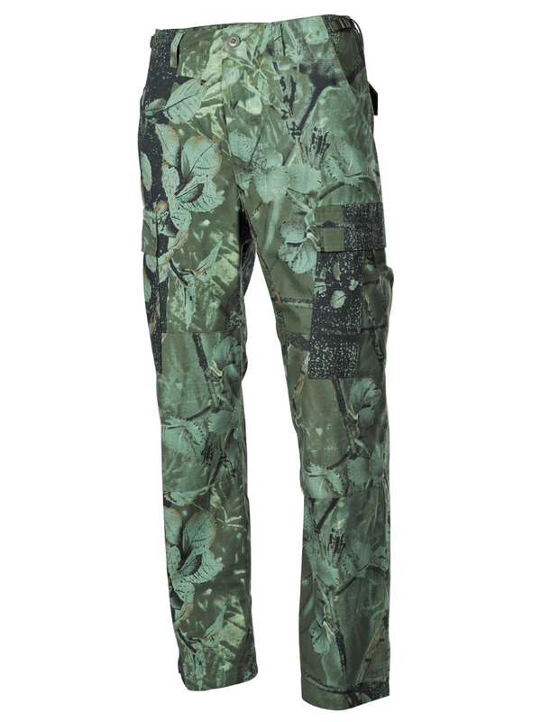 US bojové nohavice BDU, materiál Rip Stop, lovecké - zelené. Klasické US ARMY nohavice v originálnom dizajne majú dve bočné vrecká, dve zadné s klopou a dve bočné s príklopkou na nohe. Nohavice na utiahnutie, nastaviteľný pás, dvojitá kolena, zapínanie na gombíky, materiál: 100% bavlna