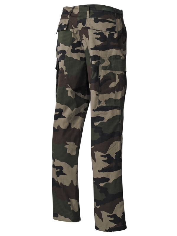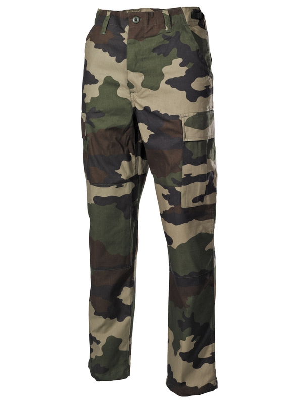 US bojové nohavice BDU, materiál Rip Stop, CCE-camo. Klasické US ARMY nohavice v originálnom dizajne majú dve bočné vrecká, dve zadné s klopou a dve bočné s príklopkou na nohe. Nohavice na utiahnutie, nastaviteľný pás, dvojitá kolena, zapínanie na gombíky, materiál: 100% bavlna