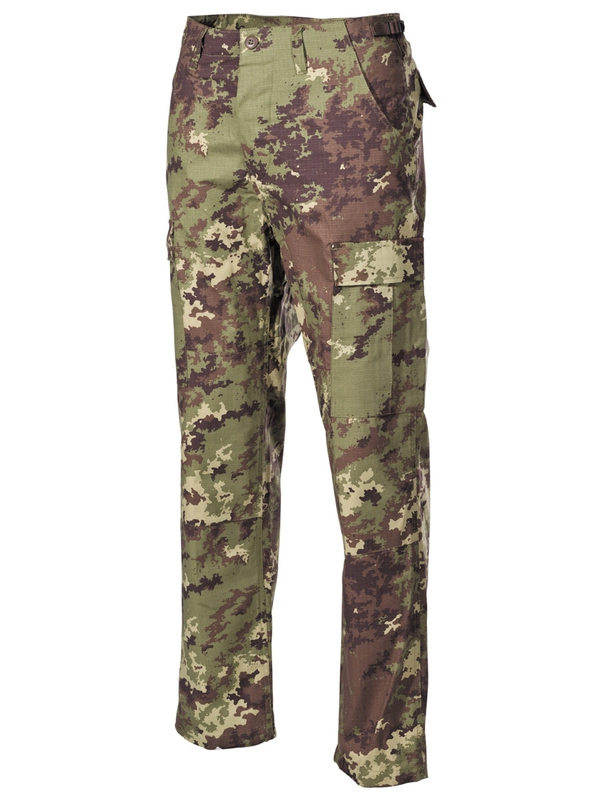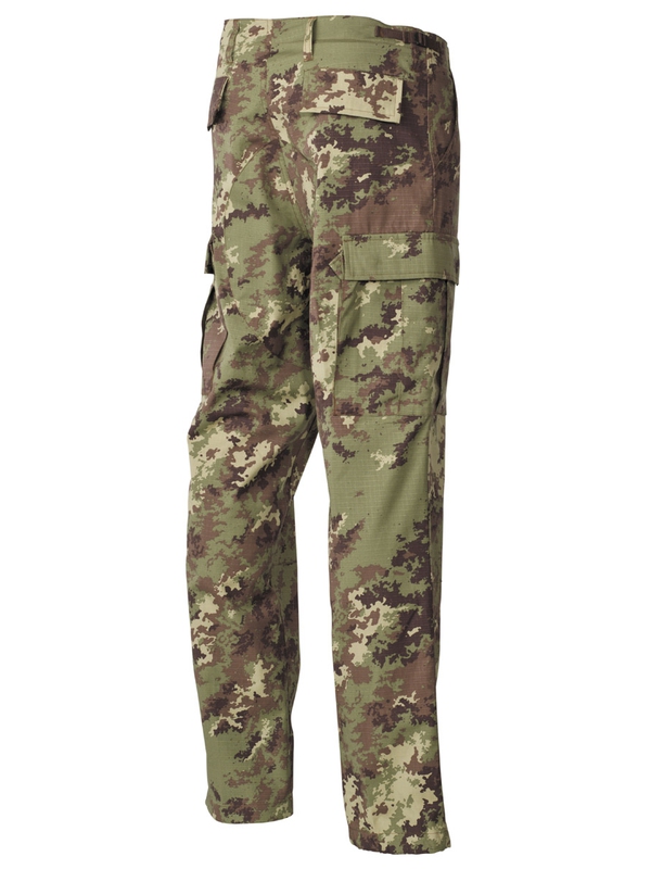 US bojové nohavice BDU, materiál Rip Stop, vegetato. Klasické US ARMY nohavice v originálnom dizajne majú dve bočné vrecká, dve zadné s klopou a dve bočné s príklopkou na nohe. Nohavice na utiahnutie, nastaviteľný pás, dvojitá kolena, zapínanie na gombíky, materiál: 100% bavlna
