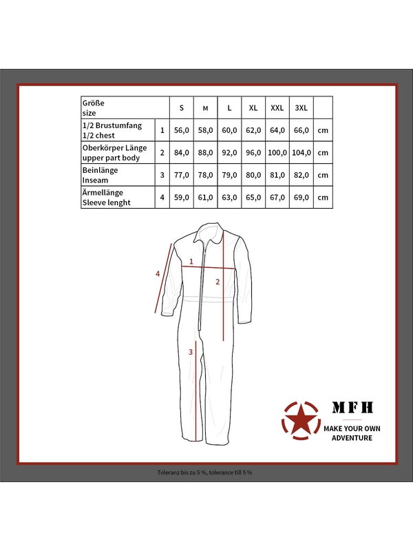 Čierny overal SECURITY má dvojpásmový predný zips, dve náprsné vrecká, dve bočné vrecká, dve vrecká na nohaviciach, jedno vrecko na rukáve bundy, všetky vrecká sú na zips. Kombinéza má sťahovacou šnúrkou v páse, zipsy na okrajoch rukávov a nohavíc. Materiál: 65% polyester, 35% bavlna.