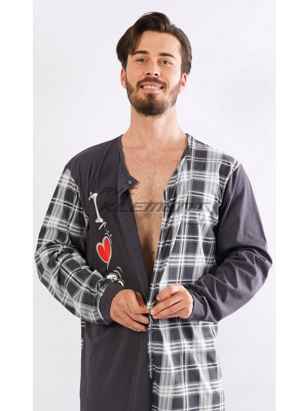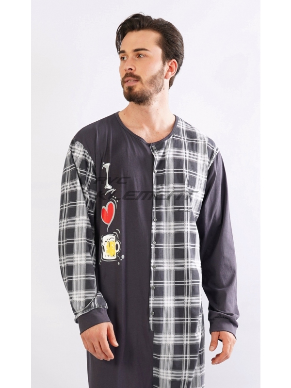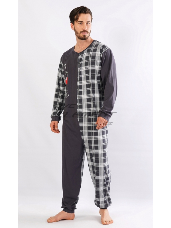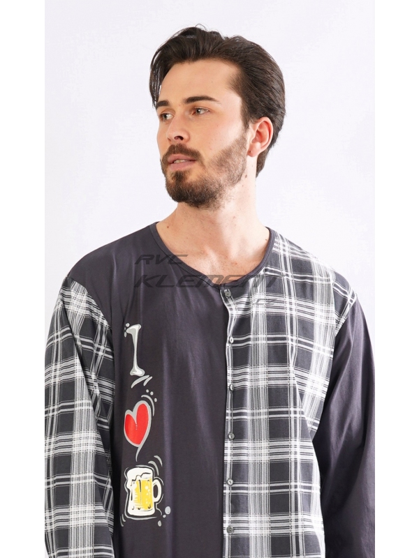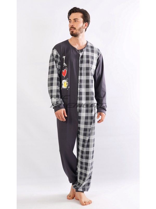 Pánsky bavlnený overal I love Beer. Celozapínací overal zaručuje pohodlné spanie, rukávy a nohavice sú zakončené elastickým lemom. Overal sa pohľadovo skladá z dvoch polovíc - jednofarebnej, ktorá je doplnená veselou potlačou, druhá polovica je potlačená károu, z káry je aj zadný diel. Použitý bavlnený materiál je príjemný a poddajný na dotyk. Pokyny pre údržbu: - 100% bavlna Miery namerané na výrobku: