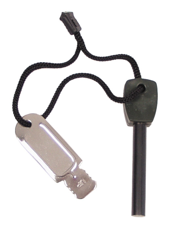 Švédske kresadlo Army. Po prejdení plieškom po oceľové tyčinke odlietavajú iskry, ktoré zapáli pripravené podložie pre oheň. Podpaľovač a pliešok sú spojené praktickým povrázkom. Dĺžka: cca 9,5 cm