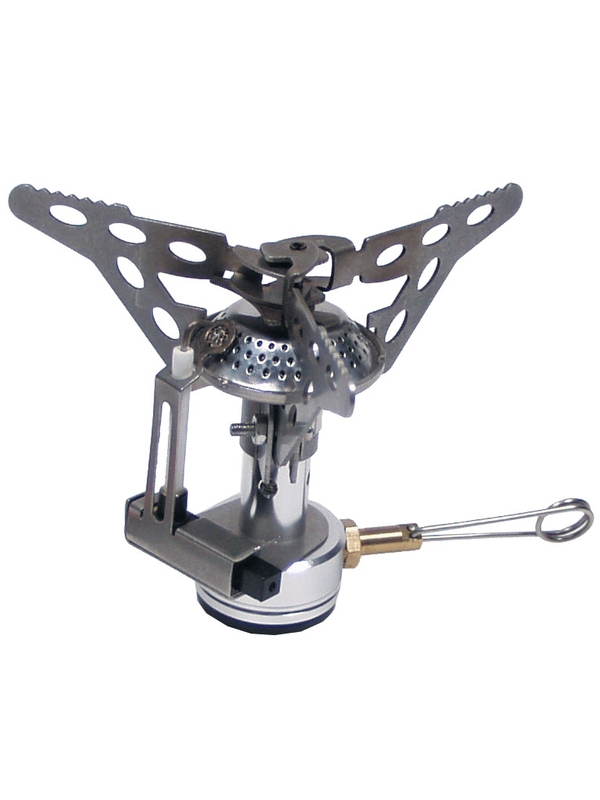 Plynový varič, skladací, malý, s piezoelektrickým zapaľovaním. Nerezový horák, skladacia stojan na kanvicu, hliníkový ventil, elektronické zapaľovanie. Výkon: 1800 W, hmotnosť: 125 g, veľkosť pri zložení: cca 70x65 mm