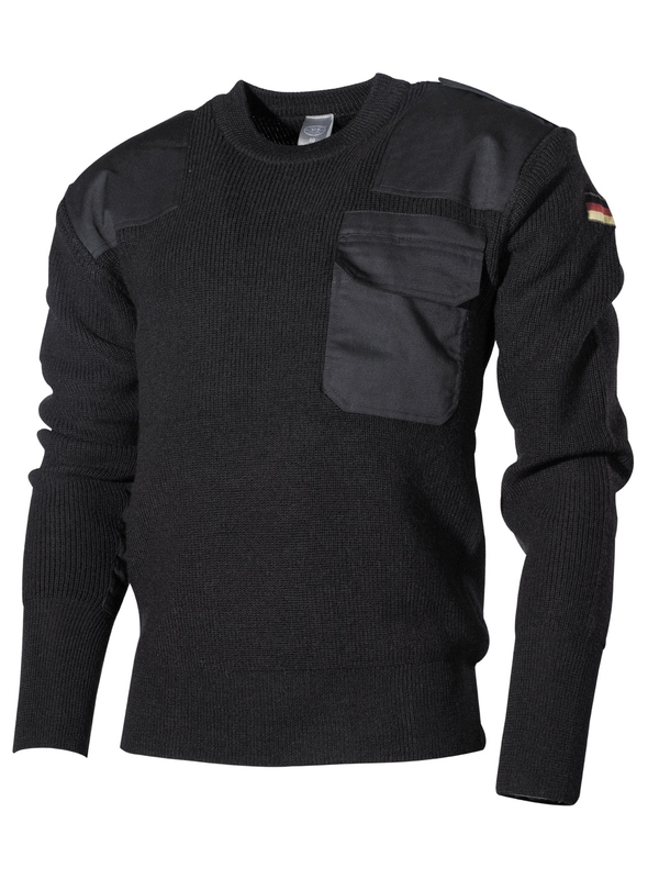 Čierna BW mikina cez hlavu s vreckom na prsiach, ktorá je rovnako ako predlaktia a ramená vystužená plátnom, materiál: 80% vlna, 20% polyacryl. | ||