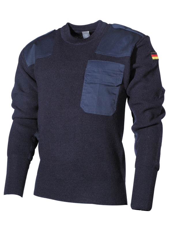 Modrá BW mikina cez hlavu s vreckom na prsiach, ktorá je rovnako ako predlaktia a ramená vystužená plátnom, materiál: 80% vlna, 20% polyacryl. | ||